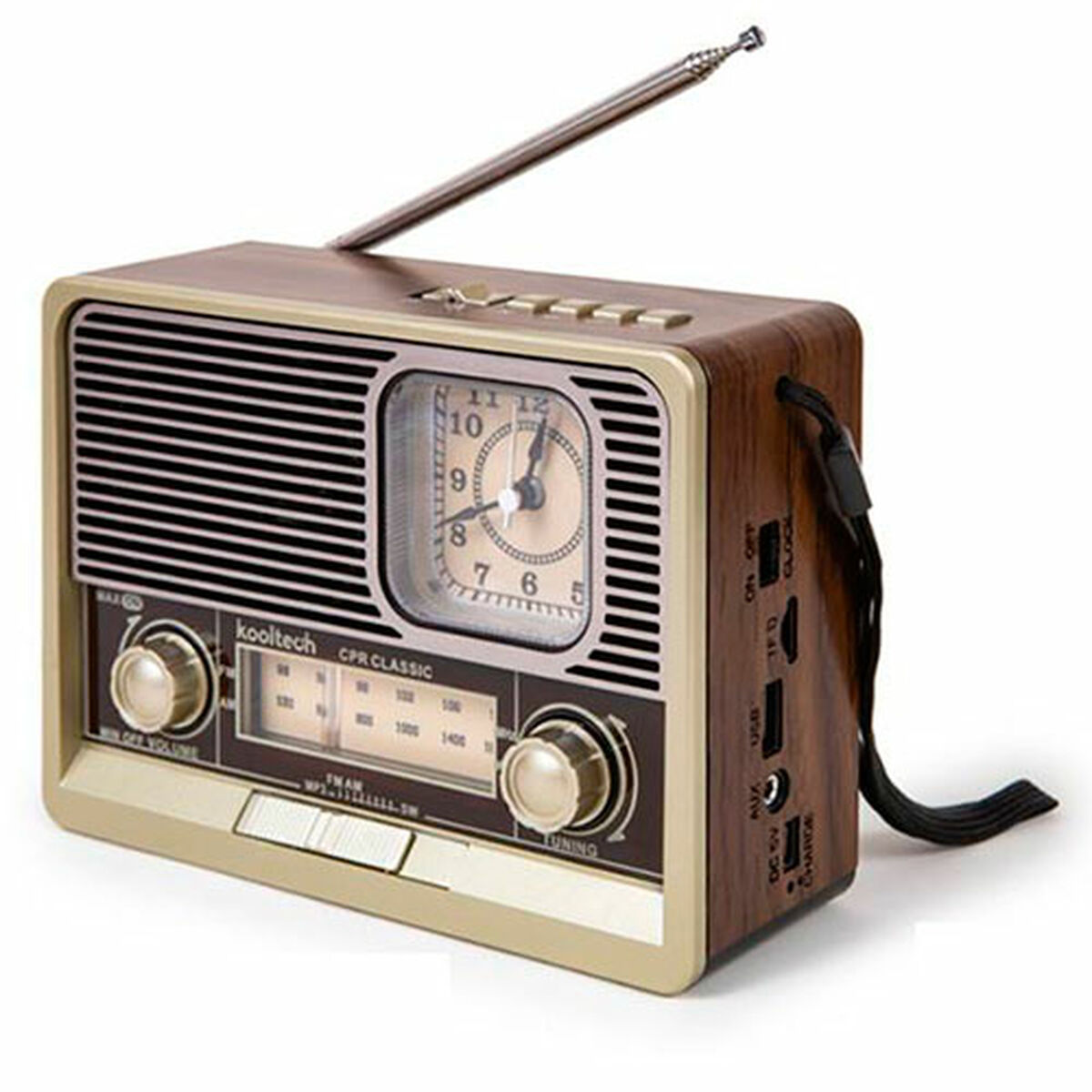 Wenn Sie sich leidenschaftlich mit IT und Elektronik beschäftigen, mit der Technologie auf dem neuesten Stand sein wollen und nicht einmal die winzigsten Einzelheiten auslassen, kaufen Sie Tragbares Bluetooth-Radio Kooltech Vintage.